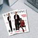 A bold, editorial-style wedding invitation featuring a customisable couple photo background with a transparent overlay. Includes a scannable QR code linking to your wedding website, with striking black and red text for a modern, fashion- nspired look.