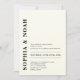 This invitation features a sophisticated ivory background with a minimalistic design. The names of the couple are highlighted in bold, elegant typography, adding a touch of modern elegance to the invitation. The back features QR Code and monogram initials.