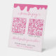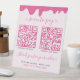 Display your contactless mobile payment options in style with this pink frosting drops with sprinkles counter or table top pedestal sign. Perfect for your bake shop, confectionery, a cake or cupcake baker, cafe and more! This sign will catch people's eye and make it easy for them to check out! Professionally designed so that the QR codes are not too close together so they work properly. Pretty script with tails for the Scan to Pay at the top and Thank You For Your Order at the bottom. Completely customisable to fit your business. Get pink QR codes for a great look! See our coordinating items as well!