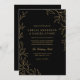 QR Code Modern Black Gold Minimal Leaf Wedding Invitation
