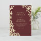 QR Code Modern Burgundy Gold Minimal Leaf Wedding Invitation