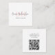 This square business card exudes modern elegance with its minimal, feminine design and an initial monogram in script calligraphy. It also includes a QR code for effortless access to your contact information.