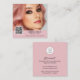 Modern networking QR code business card with 2 photos for makeup artist, hair stylish, lashes or nails extensions small business. This trendy chic cosmetologist scannable barcode business card is a good way to promote and engage with your customer by sharing more info about your business using the QR code, connect to your social media or add your logo for branding purpose.