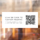 A simple custom white QR code vinyl window cling decal sign template in a modern minimalist style which can be easily updated with your QR code and custom text such as Scan Me to Sign Up, Scan QR to View Products. The perfect way to promote and advertise your event or small business!