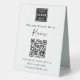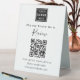 QR code Modern Please Leave us a review Big Table Tent Sign. Modern, elegant and simple business card to invite customers to leave you a review using a QR code to direct them to your social media, or website this vertical business card features a custom business logo and additional text for tagline or contact information. The perfect strategy to build an audience, increase followers, grow your customer base and create community to generate quality advertisement.