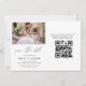 Modern and Elegant Landscape Horizontal Four (4) Photo QR Code Save the Date Wedding Magnet with hand lettered script typography. The save the date invitation magnet includes script typography and chic and simple design that you can add your customised engagement photograph picture to.