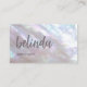 This elegant luxury business card features an iridescent mother-of-pear design and a big handwritten calligraphy for your name. On the reverse side is a scannable qr code and a custom template for name, address and socials. This professional glam business card is perfect for salon, make up artists, beauty, jewellery and more.