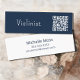 QR code Minimalist music violinist business card with a blue background and simple design. With simple lettering, you can customise with your own text. Great for promoting your violin performing business.