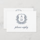 QR Code Navy Blue Crest Monogram Wedding RSVP Card