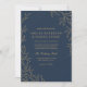 QR Code Navy Blue Gold Minimal Leaf Wedding Invitation