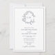 QR Code Navy Blue Leafy Crest Monogram Wedding Invitation