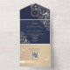 QR Code Navy Rose Gold Wedding All In One Invitation