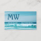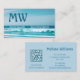 Ocean wave photo business card. Your initials in an elegant modern serif font. The background showcases an photo of a wave and the sky. Templates for your name, title, phone number, mail and website address, QR-code to your website or social media account. This business card is perfect for beach property realtors, beach-based businesses like beach boutique, beach hotel, beach real estate agent, as well as spa and massage therapy.