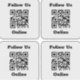 Four stickers each with a QR Code and with the message "Follow Us Online". Replace the QR Code url with your own website link.