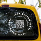 Customisable QR code vinyl cling sticker for your company cars and other windows with white text. Add URL to create Qr code and text.