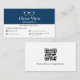 Promote your optometry practice with this modern business card featuring a clean, scannable QR code for instant access to appointments, website links, or contact information. The professional layout highlights your name, credentials, and clinic details—perfect for optometrists, eye doctors, ophthalmologists, and vision-care offices seeking a sleek, digital-forward, fully print-ready design.