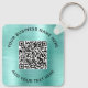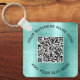 Elegant promotional keychain for your business or organization with a light mint green faux brushed metallic background. Add your QR code or logo and two lines of customized text, such as your company name, slogan, thank you, or leave blank.