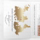 Modern and Elegant World Map Invitation Wedding Destination, like passport with faux gold crest with monogram, Italy. Add your QR code.