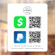 A simple bold custom white business scan to pay by CashApp or Paypal QR code vinyl window cling decal sign in a modern minimalist style. The versatile template can easily be updated with your company logo, graphic or photo, 2 QR codes, custom text, payment icons and social media icons (Facebook & Instagram). The icons can easily be replaced with your own to make a truly bespoke professional design for your own business! For example you could include other social media account (such as Twitter, Linkedin, WhatsApp, YouTube) or payment icons (such as Venmo, Zelle, Google Pay, Bitcoin) and so much more! Need help? Feel free to contact me using the message button on the product page. I am happy to help with your personalisation such as adding different icons.