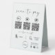 Elevate your business with our cutting-edge QR Code Payment Tabletop Sign. This black and white sign seamlessly combines modern aesthetics with ultimate convenience, offering customers a range of payment options, including Apple Pay, Venmo, PayPal, cash, and credit cards.