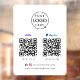 A simple custom white business scan to pay by Zelle or Paypal QR code vinyl window cling decal sign in a modern minimalist style. The versatile template can easily be updated with your company logo, graphic or photo, 2 QR codes, custom text, payment icons and social media icons (Facebook & Instagram). The icons can easily be replaced with your own as an added extra to make a truly bespoke professional design for your own business! For example you could include other social media account (such as Twitter, Linkedin, WhatsApp, YouTube) or payment icons (such as Venmo, CashApp, Bitcoin) and so much more! Need help? Feel free to contact me using the message button on the product page. I am happy to help with your personalization such as adding different icons. I can adapt the template to suit your business.