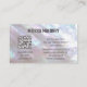 This elegant business card features custom initials in an elegant handwritten script on a mother-of pear background.