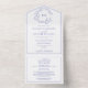 QR Code Periwinkle Leafy Crest Monogram Wedding All In One Invitation