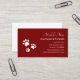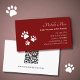 QR code Pet Sitter red business card, with a paw print design and white and black typography. With customisable text, you can add your own information. The back has a QR code where you add your website. Great for adding a professional touch your pet services business.