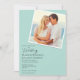 This simple elegant 2 photo sea glass beach destination wedding invitation features your own photo over elegant hand written calligraphy script on a sea glass green background, and the back of the card features another photo, your QR code and website, leading your guest to more information regarding your wedding. A wonderful way to invite your guests to your tropical, nautical, seaside or oceanfront location wedding in Hawaii, Florida, California, Mexico, or other destination wedding location. Photographs of the sand dollars by T.K. Goforth, all rights reserved.
