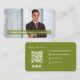 Modern horizontal business card design featuring a clean olive green layout and scannable QR code for instant connection. Includes space for a professional photo, name, title, and contact details, making it perfect for consultants, realtors, and business professionals. A sleek, modern, and easy way to share your information.