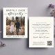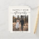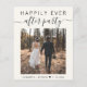 Budget-friendly light cream elopement or private wedding announcement and all-in-one wedding reception invitation. The front features your photo, "Happily Ever After Party" in a mix of simple typography and a stylish script with swashes and your first names and wedding or reception date joined together by a heart. On the back, personalise your marriage announcement and reception invitation, input your wedding website address to create a QR code for guests to scan to see your wedding photos, all the details and to RSVP online, and add your names in a signature-like script. This budget semi-gloss paper is similar in weight to photo paper. A larger 5x7 traditional card stock version is also available (message us for the link).