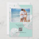 This stylish QR code photo sea glass beach destination wedding invitation features your own photo over a trio of tropical white sand dollars and elegant hand lettered calligraphy script on a sea glass green background. A wonderful way to invite your guests to your tropical, nautical, seaside or oceanfront wedding in Hawaii, Florida, California, Mexico, or other destination wedding location. Photographs of the sand dollars by T.K. Goforth, all rights reserved.