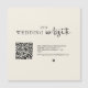 Less hassle when you invite your guests online with a QR code that sends them directly to your wedding website for additional details. The design features a minimalist, ivory-cream colour creative with a modern very elegant calligraphy Wedding script. Easily replace with your own QR code and your personal information of choice. There are QR code generators online if needed. Simply place the keywords "QR code creator" into Google search and lots of free options will appear for you to choose from.