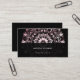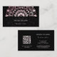 The top portion of the front side features a pink shiny metallic intricate floral mandala on a black background. The bottom portion features a black text field with an elegant font. At the backside is a scannable qr code for your website. Perfect for salon, hair-and makeup, beauty, yoga teacher, boutique or any female entrepreneur.