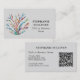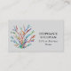 This stylish professional business card is decorated with a colourful mosaic design on a pale grey background.