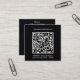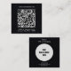 This professional minimal style square business card has white text on black. The front side has a customisable QR code that you can replace with your own. Above that is text to enter your website address and at the bottom you can enter your business address. On the back of this modern stylish card, is a round space to add your logo or a photo of yourself or your business. Personalise the text at the top with your name and title or company, and at the bottom add your phone number, email and social media handle. Feel free to enter any custom text in the suggested fields.