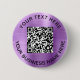 Modern and simple promotional button for your business or organisation with a brushed purple faux metallic background. Add your QR code or logo and two lines of text, such as your company name, slogan, thank you, or leave blank.