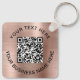 Elegant promotional keychain for your business or organisation with a brushed rose gold faux metallic background. Add your QR code or logo and two lines of custom text, such as your company name, slogan, thank you, or leave blank.