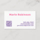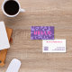 Hello in a bold font in hot pink, on an asymmetric abstract design in groovy purple, this version has a qr code on the back.