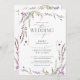 QR Code Purple Wildflower Calligraphy Wedding Invitation