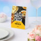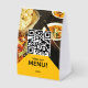 Custom qr code photo business restaurant bar table tent . Add your own qr code, photo, text, logo, brand name. Help customers to scan and choose a menu. Simple modern colorful table tent for restaurants tables, events, trade shows, shops, boutiques,