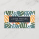 Groovy, Retro and impressive botanical themed networking card featuring digital image of leaves in elegant warm earth palette of black, orange, pink, dusty blue and green over a white background with space for your QR CODE OR LOGO on the back.