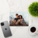 Announce the joyful news of your engagement and upcoming wedding with unique custom photo save the date real foil postcards. The 2 pictures, scannable QR code, and all wording on this invitation template are simple to personalise, including script overlay which can be changed to "Save Our Date." (IMAGE PLACEMENT TIP: An easy way to position a photo exactly how you want is to crop it before uploading to the Zazzle website.) Front side of card is printed with real metallic gold foil lettering. The design also features two pictures of the engaged couple, trendy retro script calligraphy, and modern minimalist typography. By scanning the QR code with their phones, guests are sent directly to the wedding website where they can see all of the important details and connect with you online. This stylish announcement note card is an elegant way to inform friends and family of your upcoming special day celebration. Congratulations to the bride and groom!