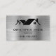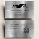 Help your roofing business stand out from the crowd with this bold, eye-catching black and silver business card. A silver faux brushed metal image provides the background for a black roof logo and black text to highlight your business name, contact information and other details. A QR code on the back takes customers and clients to your website.