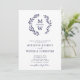 All in One QR Code RSVP Classic Navy Blue Monogram Botanical Wreath Wedding Invitation... The front of our trendy minimalist wedding invitation features a leafy navy blue botanical wreath displaying the bride's and groom's monogram initials above personalised invitation text in navy serif and sans serif typography on a crisp white background. The back of the invitation displays your wedding website QR code as well as the website's URL itself allowing your invitees to easily RSVP online and view all of the details normally sent in a wedding packet. The example QR code and all example text can be easily revised with your own information on the personalisation template.