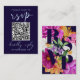 QR Code RSVP Wedding Dark Blue Colourful Floral Enclosure Card