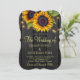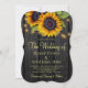 Rustic country wedding celebration and reception stylish all in one invitation template with qr code to website on dark brown barn wood background featuring big yellow gold sunflowers bouquets, strings of twinkle lights and a faux gold typography script. +++++++++++++++ Easy to personalise with your details and automatically generated QR CODE for details and to rsvp online! ++++++++++++ The invitation is suitable for outdoor garden backyard rustic country barn weddings.