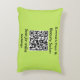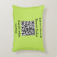 A customisable accent pillow for business promotion, in a fresh and eye-catching lime green. Click 'Personalise' to enter your text for the pillow, and to add your URL to the QR code for customers to scan. Scatter the throw pillows on sofas and chairs in the waiting area, reception and anywhere your customers may admire them.