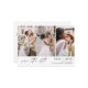 QR Code Modern and Elegant Landscape Horizontal Three (3) Photo Save the Date Wedding Magnet with hand lettered script typography. The save the date invitation magnet includes script typography and chic and simple design that you can add your customised engagement photograph picture to.