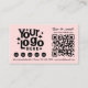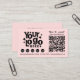 A beautifully designed business card that includes your business logo or photo, QR Code, custom social media icons, and contact details. A minimalist pink business card suitable for all types of businesses that is scannable and a digital contact. Customise this QR Code business card template and make it your own!